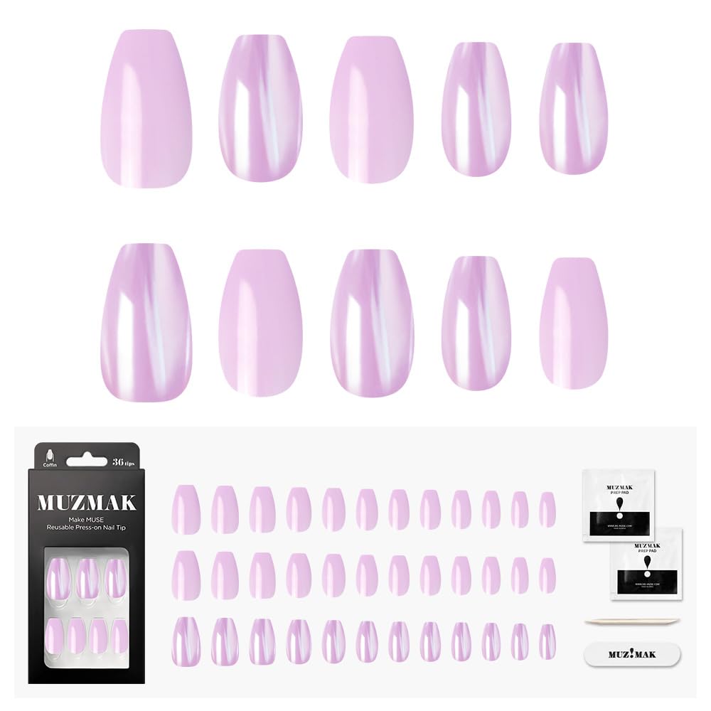 【 MUZMAK パープルグラス 】- コフィン - 36枚入り ネイルチップ 付け爪 ネイルファイル プレップパット ウッドスティック