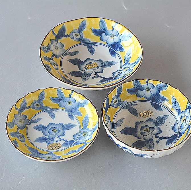 食器セット 3点セット 黄彩花紋