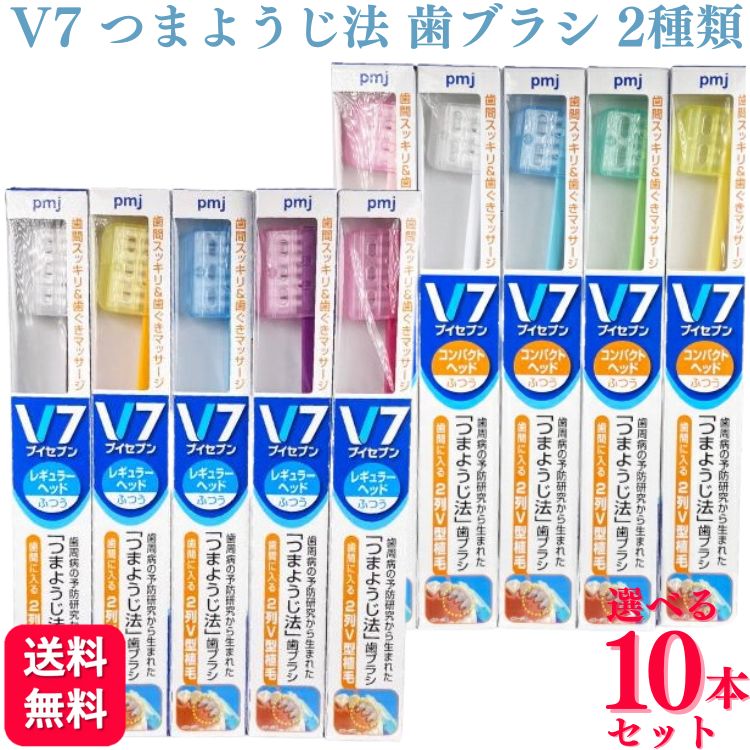 10本セット 2種類から選べる V7 つまようじ法 歯ブラシ コンパクト レギュラー ふつう 歯ブラシ