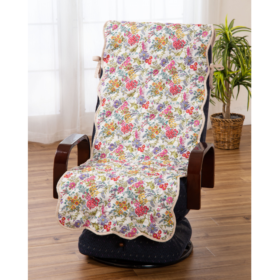座椅子カバー フラワーガーデン 小花柄 裏面すべりにくい加工 50×60cm 華やか 中わた入りキルト マルチカラー