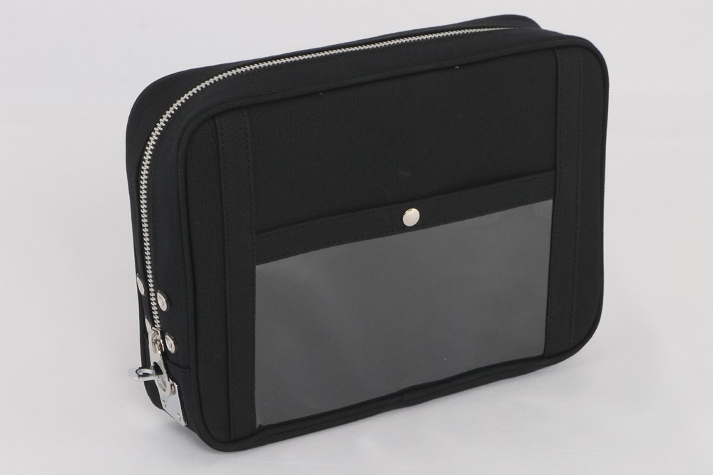 企業向け:本社・支社等拠点間の書類のやり取りに使用出来ます。 個人向け:海外旅行時、貴重品をセーフティボックスへ入れる際、このバッグに貴重品を入れてから保管することでセキュリティアップ。海外のホテルではセーフティボックスが付いている所が増えてきましたが、ポーターや清掃員は当然のように客室へ入ってきます。貴重品をセーフティボックスに入れていても勝手にボックスを開けられ貴重品を盗まれた。という事例は未だに発生しています。錠前付のバッグに入れる事で犯人はもっとセキュリティへの意識の低いターゲットに変更する事が期待できます。 特長:宅配伝票が入れられるポケットが表面に付いているのでそのまま配送可能。配送に耐えられる丈夫な帆布生地を使用したバッグです。南京錠やダイヤル錠で施錠可能な金具の付いたタイプです。(南京錠・ダイヤル錠は付属しておりません。)既にお持ちの南京錠等をそのまま使用していただけます。