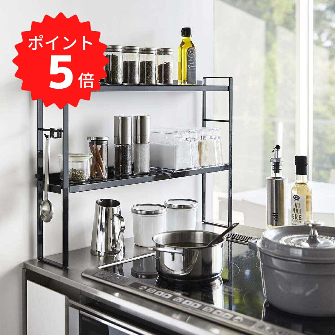 こちらのラックは、ただガスコンロ周りの空間を活用できるだけではありません。棚板が2枚ついており横幅が60cm近くと広めに作られているため、いろいろなものを収納できます。スパイスをはじめとした調味料、キッチンタイマーや調理器具などを置くことが可能です。調理をしている際に手に取りやすいというメリットもあり、いつもの料理がよりはかどるのも特徴です。