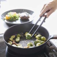 つかむ、ほぐす、盛り付けるなど調理から盛り付けまで、どんな作業もこなしてくれるシリコーン菜箸トング。その名の通り、菜箸とトングが一体化したアイテムです。