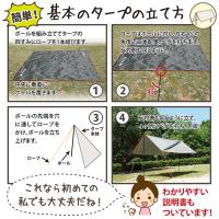 付属品:タープ本体、ポール×2本、ペグ×12本、ロープ4m×8本、取り扱い説明書