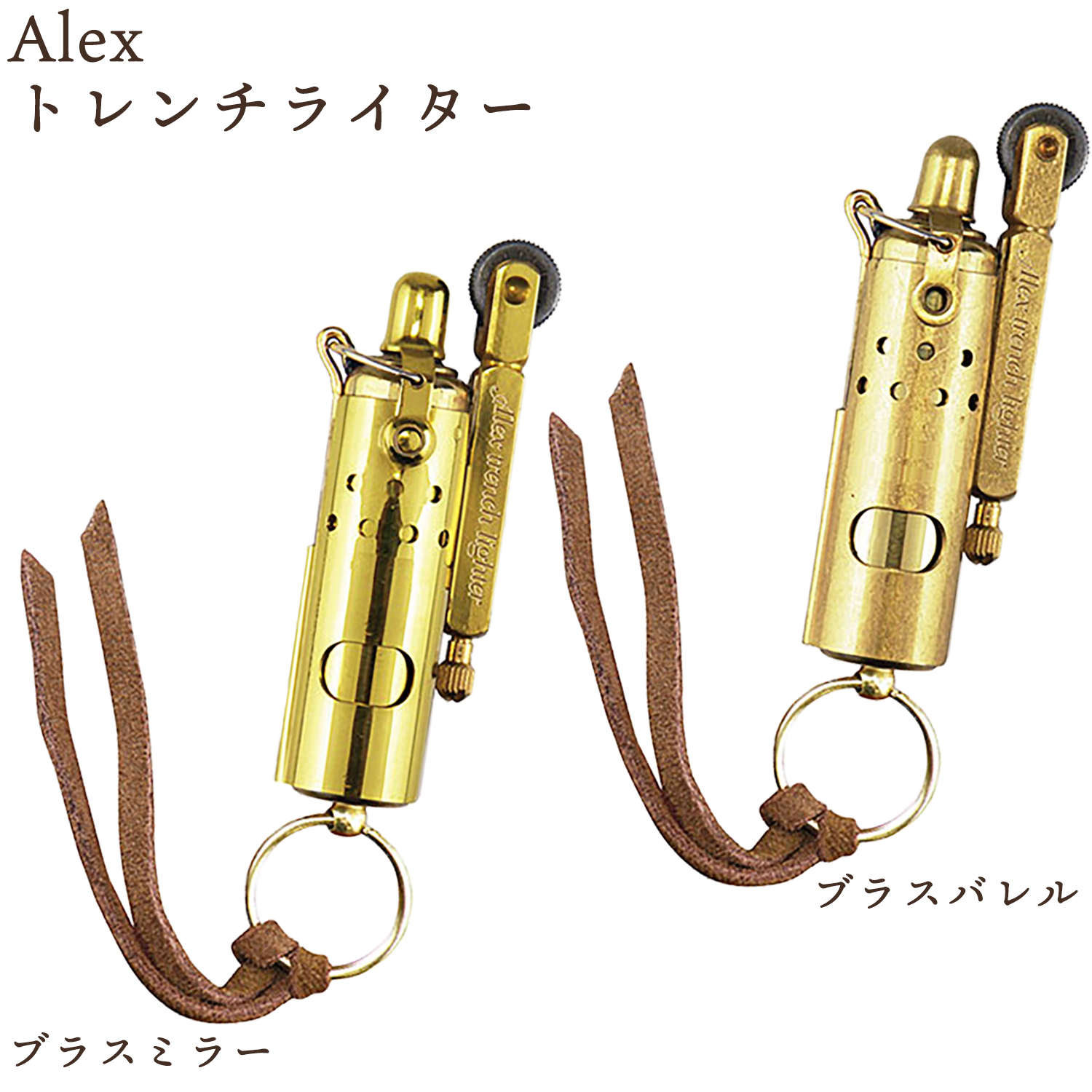 オイルライター Alex アレックス トレンチライター ブラスミラー ブラスバレル‐ビンテージ ミリタリー 屋外 風防 トレンチ 塹壕 薬莢 ストラップ付