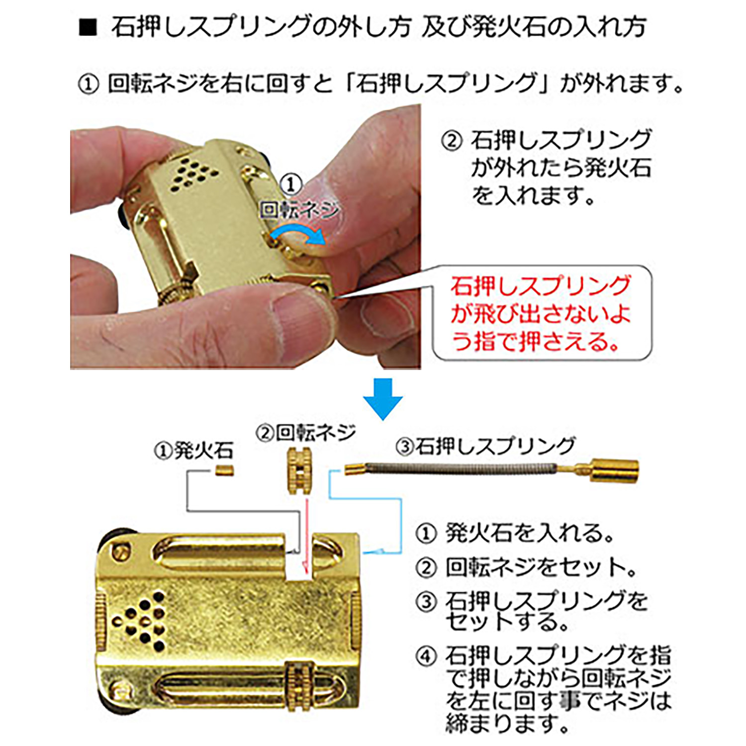 回転ヤスリが両サイドにある事で使用時に発火石が無くなっても反対側の回転ヤスリで着火ができます。