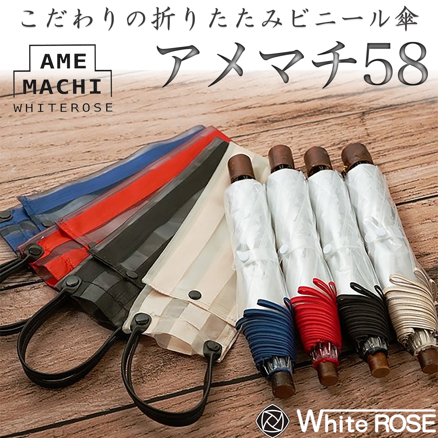折りたたみ ビニール傘 アメマチ58 ホワイトローズ ‐アメマチ あめまち 58cm 日本製 ビニ傘 折り畳み 透明傘 手開き 8本骨 丈夫 軽量 逆支弁 最高級 風に強い