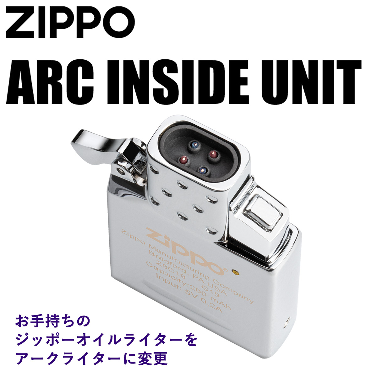 お手持ちのジッポーオイルライターをアークライターに変更できます。