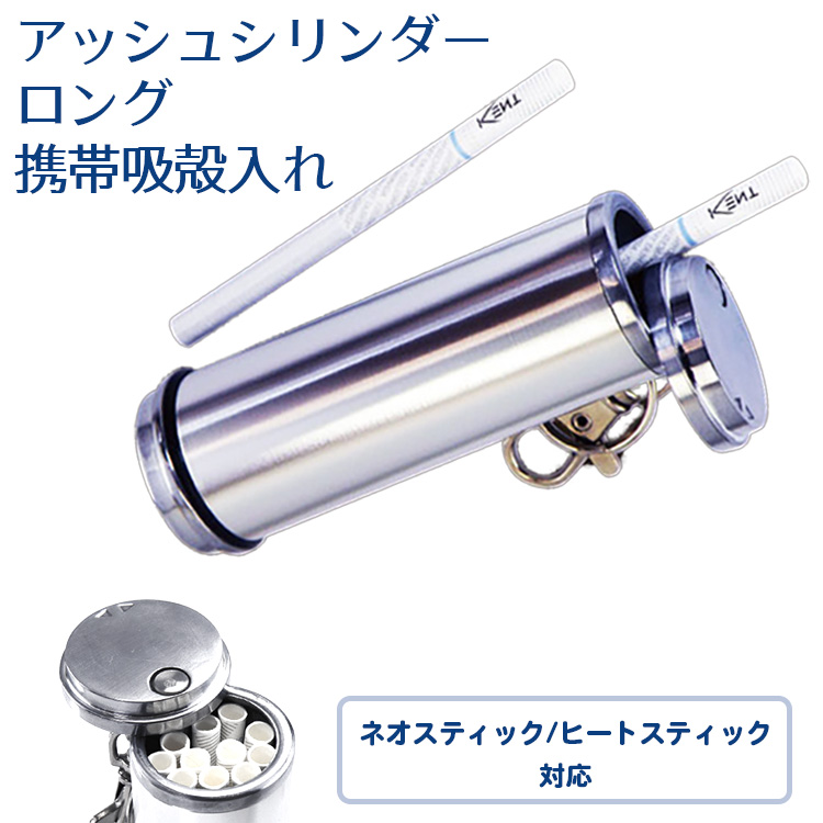 携帯灰皿 ロング ネオスティック ヒートスティック アッシュシリンダー シルバー 携帯吸殻入れ‐ペンギンライター glo グロー アイコス 軽量 キーホルダー