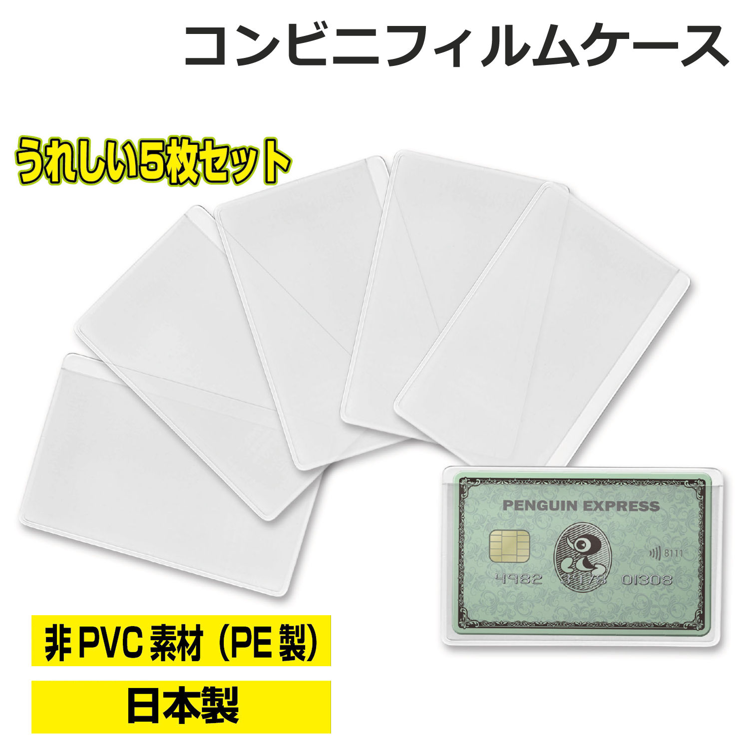 【5枚入り】カードケース 日本製 フィルムケース クリア 透明 PE素材 口ズレ加工 スリップ性 入れやすい 保護 丈夫 ETS キャッシュカード マイナンバーカード