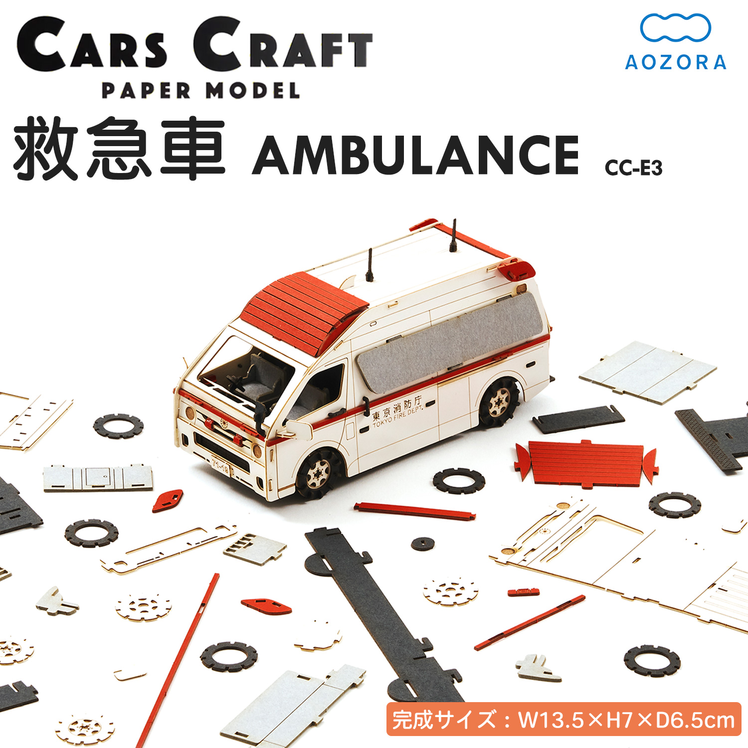カーズクラフト 救急車 緊急シリーズ‐ペーパークラフト 働く車 工作キット キット 重機 組み立て 組立 ミニチュア ペーパーモデル あおぞら