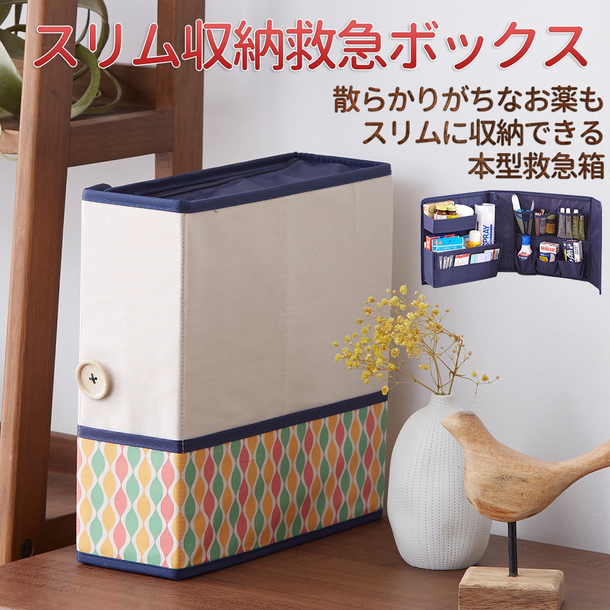 【在庫限り】スリム 救急ボックス‐コンパクト 収納 救急箱 薬箱 ブック型 シェルフ収納 本棚収納 コスメ箱 ジュエリー箱 裁縫箱 Y-134
