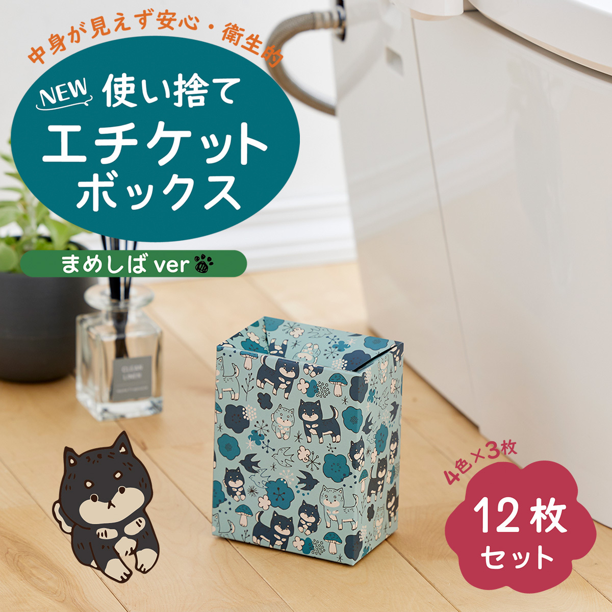 送料無料 豆柴柄 NEW 使い捨て エチケットボックス 12枚セット 汚物入れ‐消臭 サニタリーボックス ナプキン処理袋 エチケット袋 旅行 携帯用 トイレ ゴミ箱