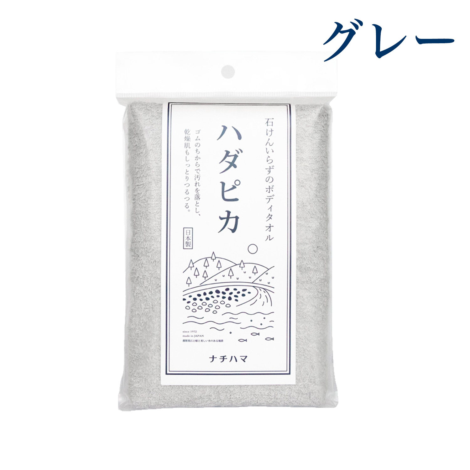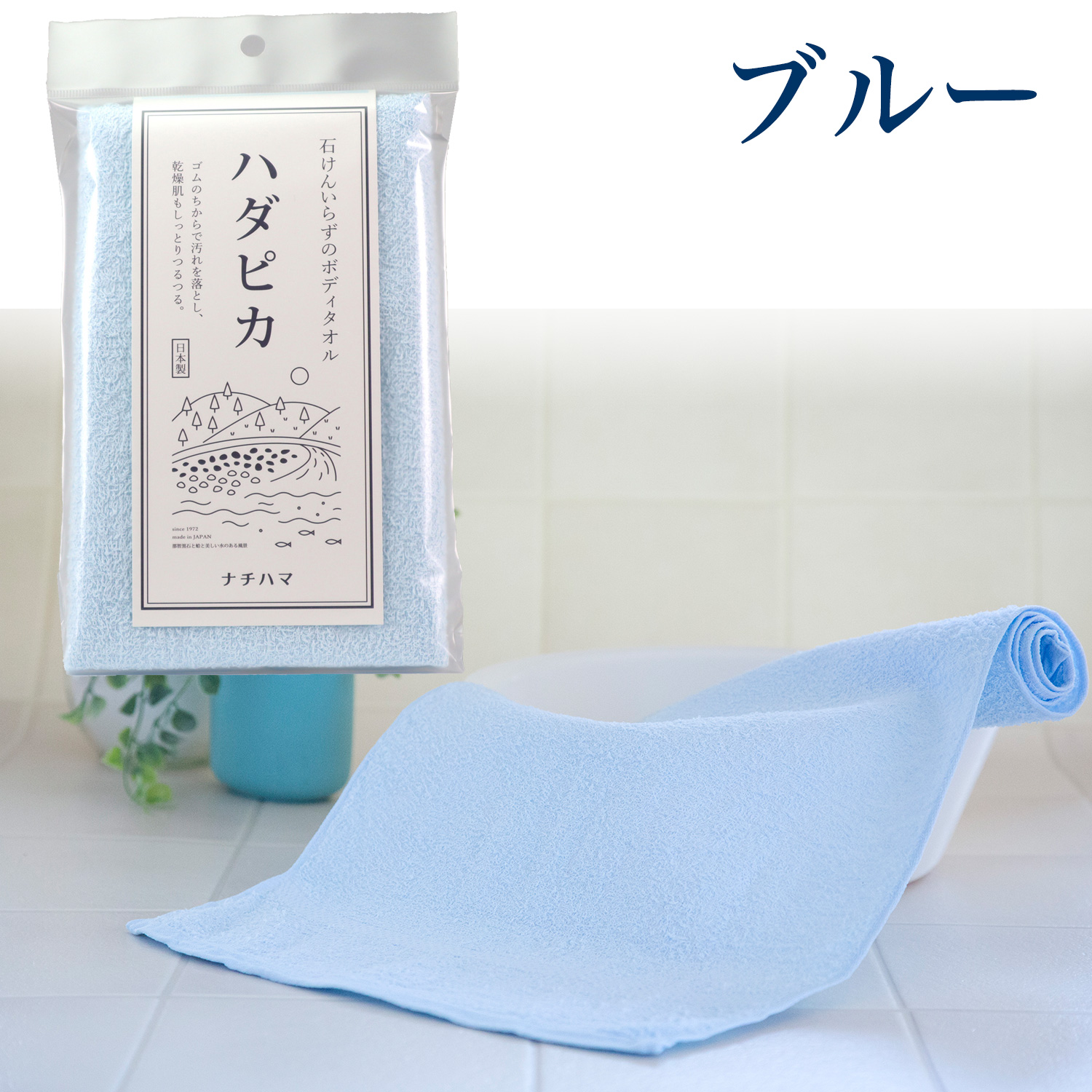 【1個】ボディタオル ハダピカ ‐ ナチハマ 石けん不要 ゴムタオル あかすり 垢すり 角質ケア 乾燥肌 ボディータオル 旅行 キャンプ 入院 アウトドア 日本製