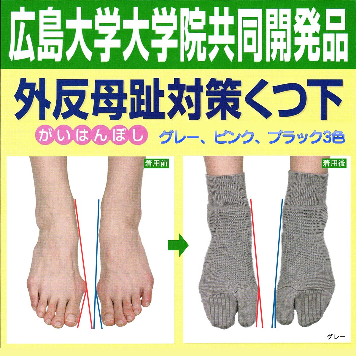 この外反母趾で問題に、広島大学とのタッグを組み開発したのが当商品です。