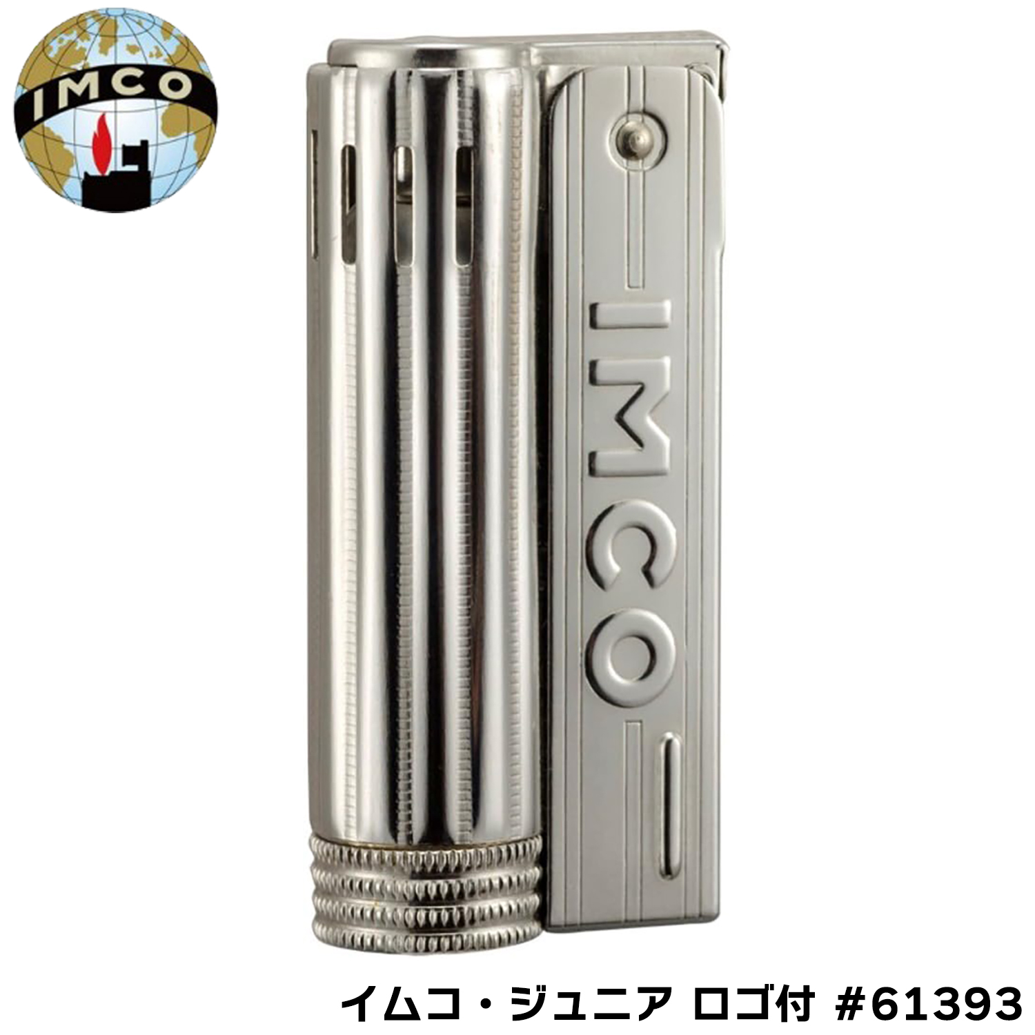 オイルライター イムコ ジュニア ロゴ付 #61393‐SUS430 ステンレス IMCO 柘製作所 イムコ・スーパー IMCO SUPER ワンタッチ着火 オイルタンク着脱可能 フリント