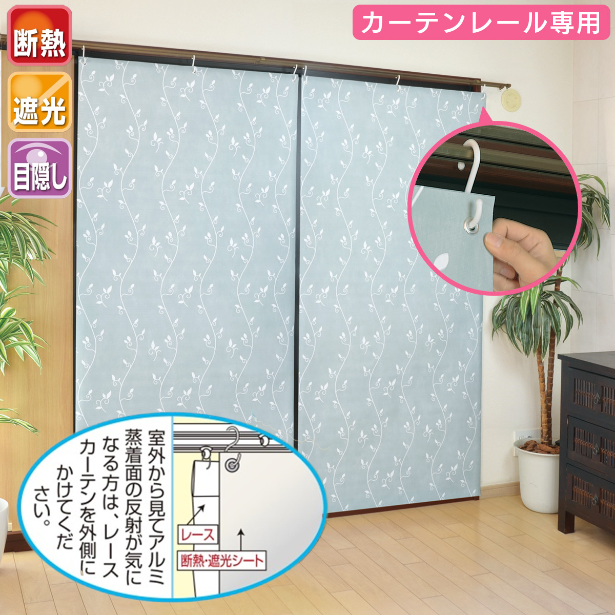 - ・カーテンレールなどS字フックを引っ掛ける箇所のない窓には使用できません。