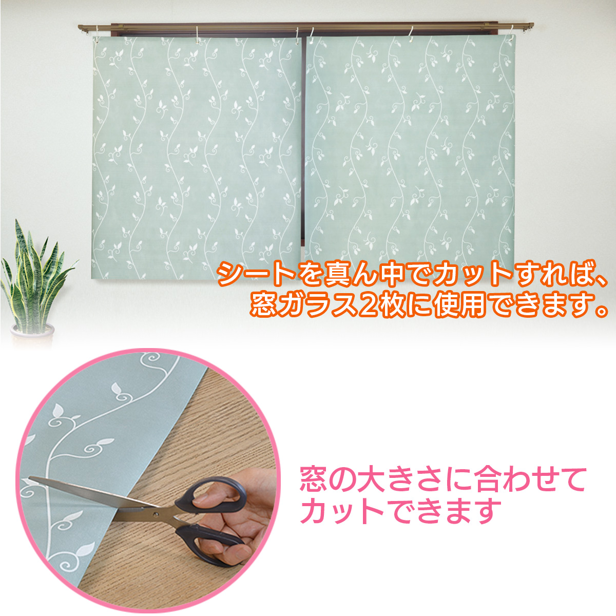 シートはハサミ等でカットできるので高さ調節や真ん中でカットすれば窓ガラス(1m以内)2枚に使用できます。