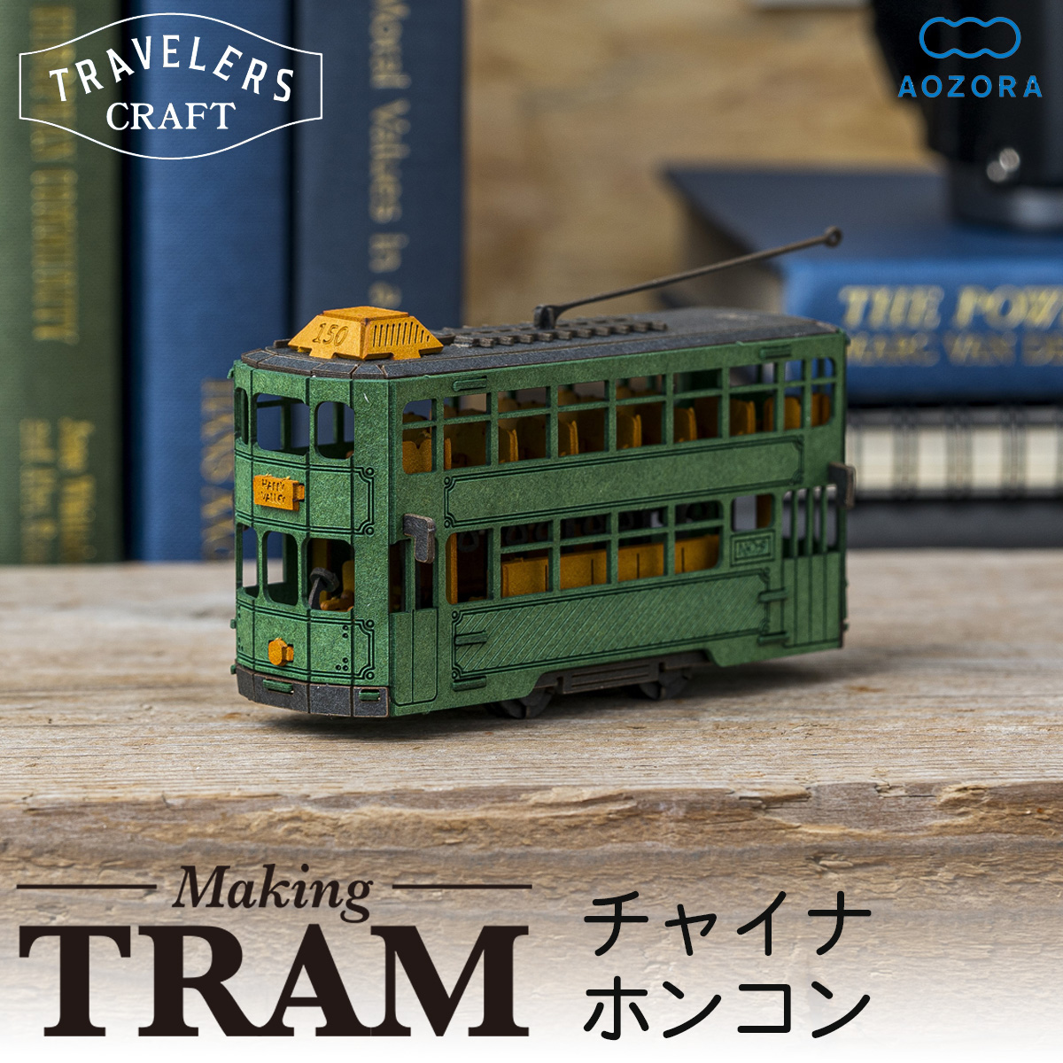 送料無料 メイキング・トラム 香港(ホンコン)‐ 路面電車 工作キット トラベラーズクラフト チャイナペーパークラフト ミニチュア ペーパーモデル 電車 あおぞら
