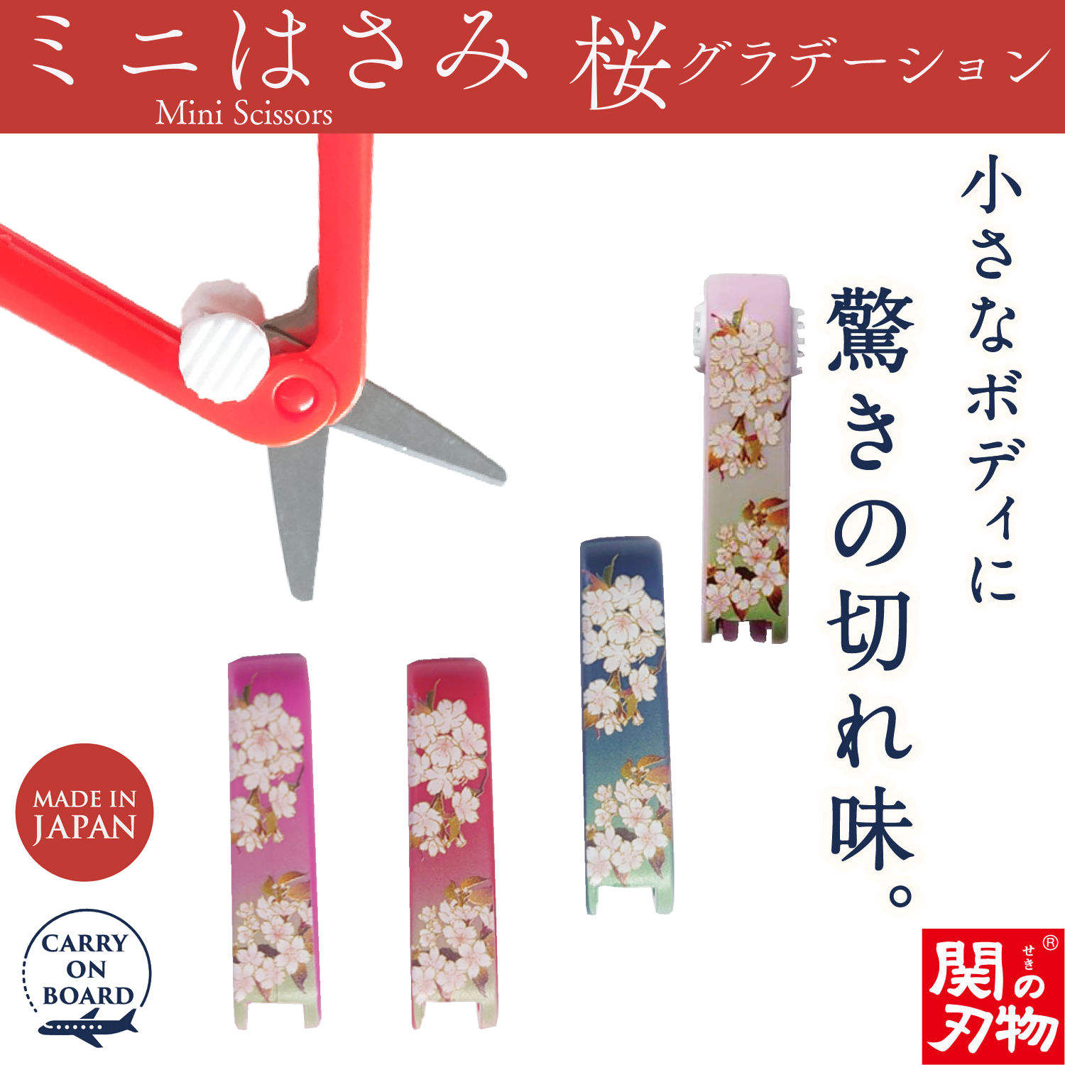 機内持ち込み可 ミニはさみ 桜 グラデーション 日本製 関の刃物 安全ロック付 携帯用 小さいハサミ 根付 ストラップ付 和柄 ウカイ利器 UC-447W サクラ