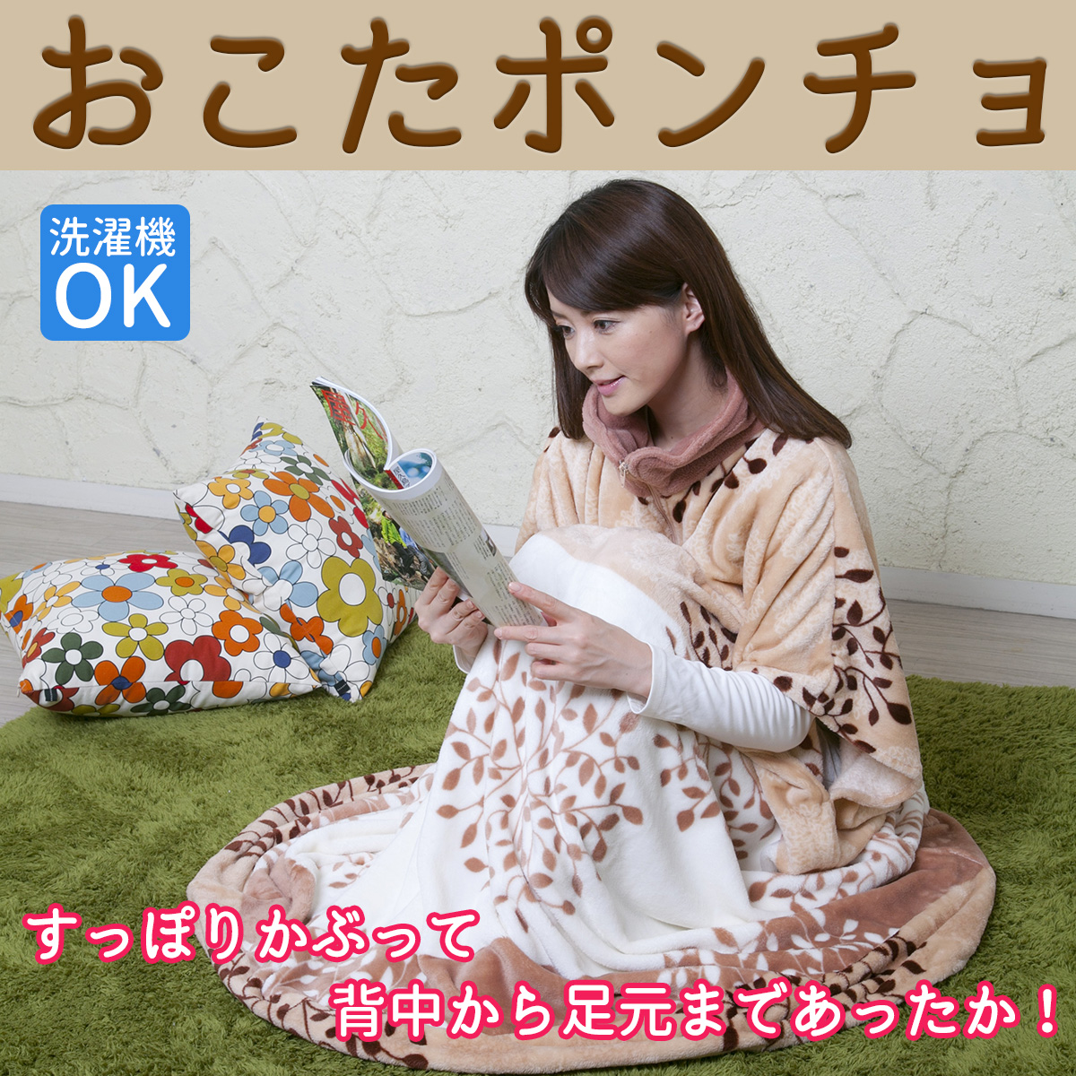 送料無料 おこたポンチョ SPP-10087 着る毛布 ‐ポンチョ 着る毛布 上着 部屋着 フランネルボア フリース 洗濯可 ブランケット かいまき