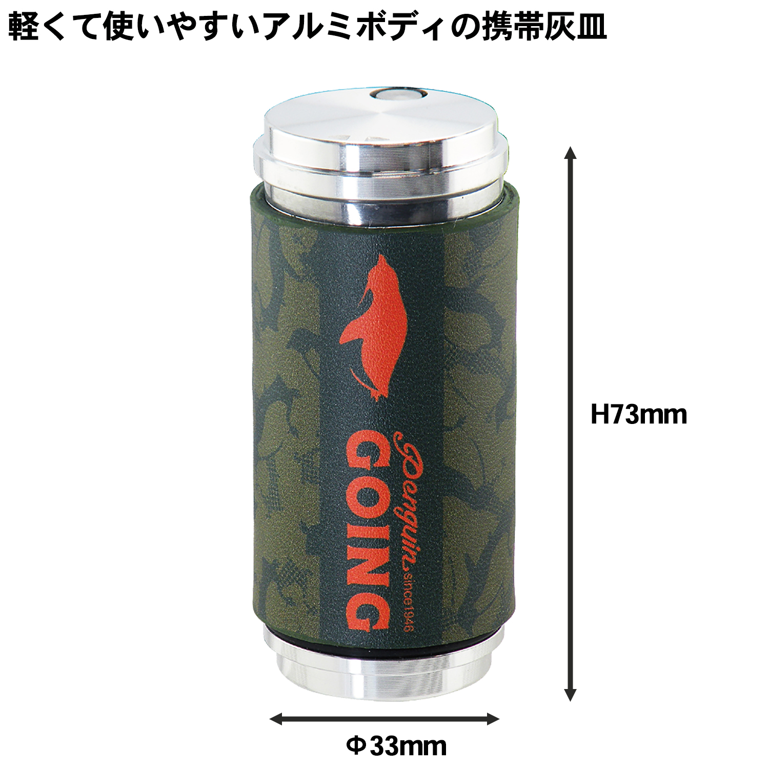 携帯灰皿 ペンギンゴーイング アッシュシリンダー シンセティックレザー 革巻き 本革 アルミ製 軽量 スライド開閉 革張り ペンギン ゴーイング PENGUIN GOING