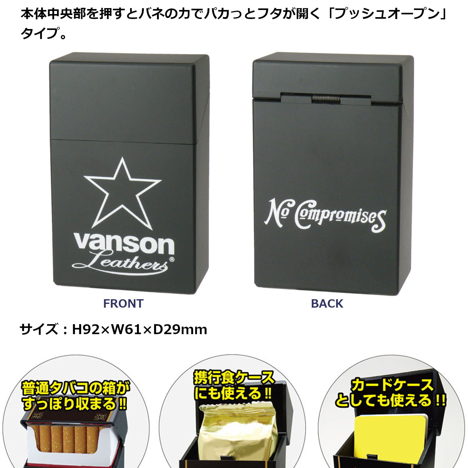 シガレットハードケース VANSON マルチハードケース スター V-HC-01 マルチハードケース シガレットケース レギュラー 85mm プラスチック ペンギンライター