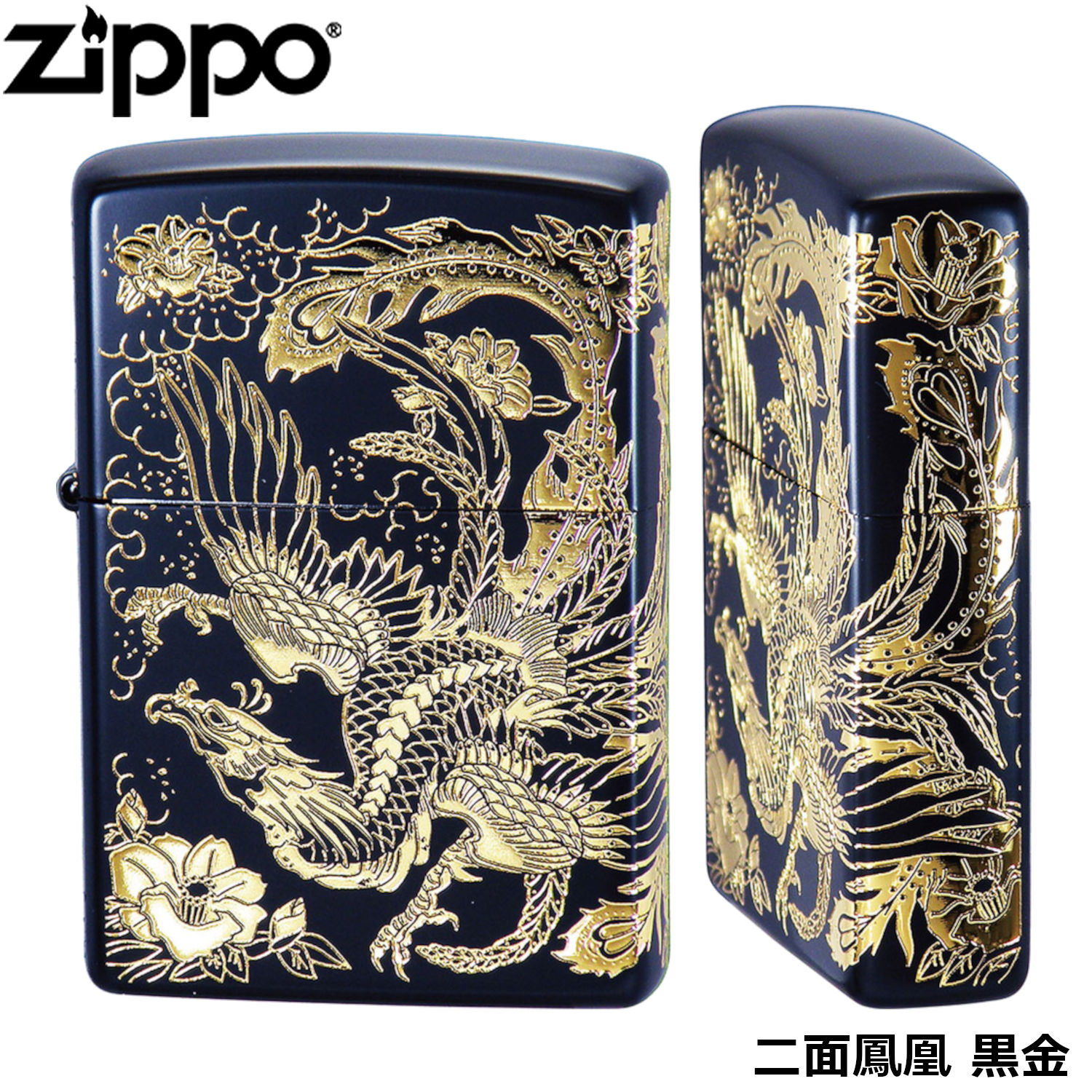 ZIPPO 鳳凰 黒金 二面連続加工 エッチング イオンブラック 金メッキ ジッポー ライター ジッポ Zippo オイルライター zippo ライター 正規品