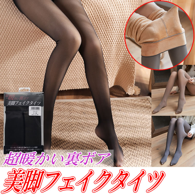 【SALE】 美脚フェイクタイツ★超暖かい裏ボア[クリックポスト][送料無料]ゴルフタイツ アウトドアタイツ 美脚見え 裏起毛 1200デニール相当