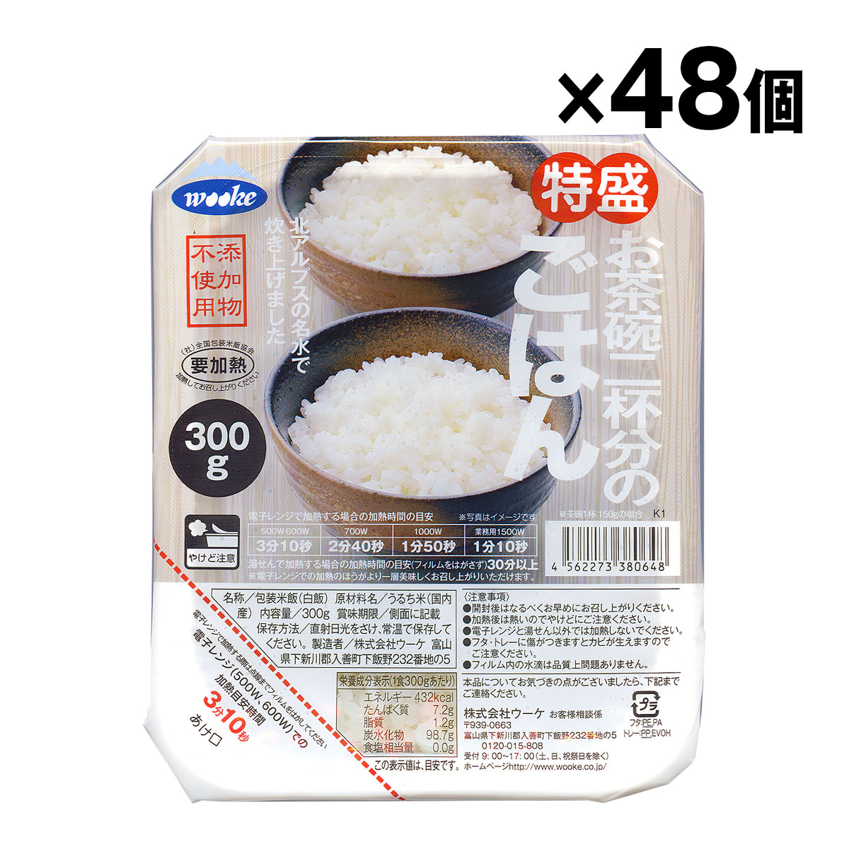 ⇒【お届け先が会社様・団体様なら、こちらのショップでも同一商品がご購入頂けます!!(本州/四国/九州は送料無料)】原材料名/国内産米100%使用 内容量/「特盛」300g ×48個 賞味期限/製造から10ヶ月(※開封後はなるべくお早めにお召し上がりください)調理方法/電子レンジでの加熱目安時間 3分10秒(500W 600W)保存方法/直射日光を避け、常温で保存してください