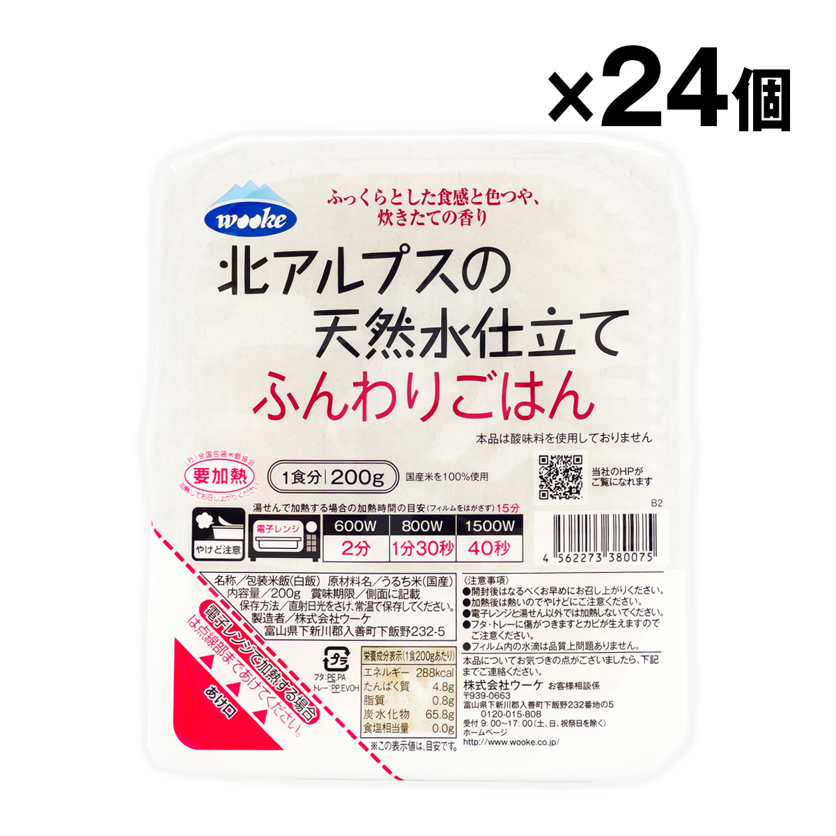 ウーケ 北アルプスの天然水仕立てふんわりごはん 200g ×24個 パックごはん パックライス 1ケース ケース売り