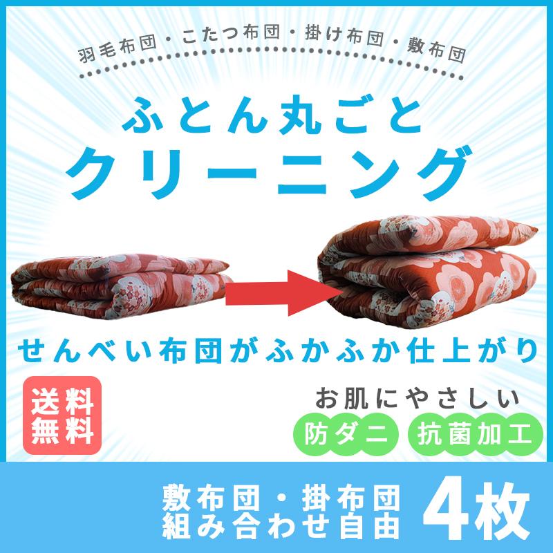 ふとん宅配クリーニング 4枚コース 防菌防ダニ加工付き!布団 丸洗い クリ ーニング