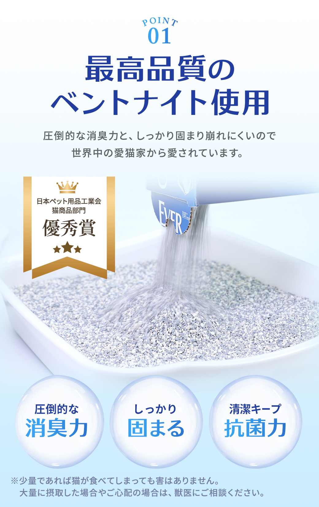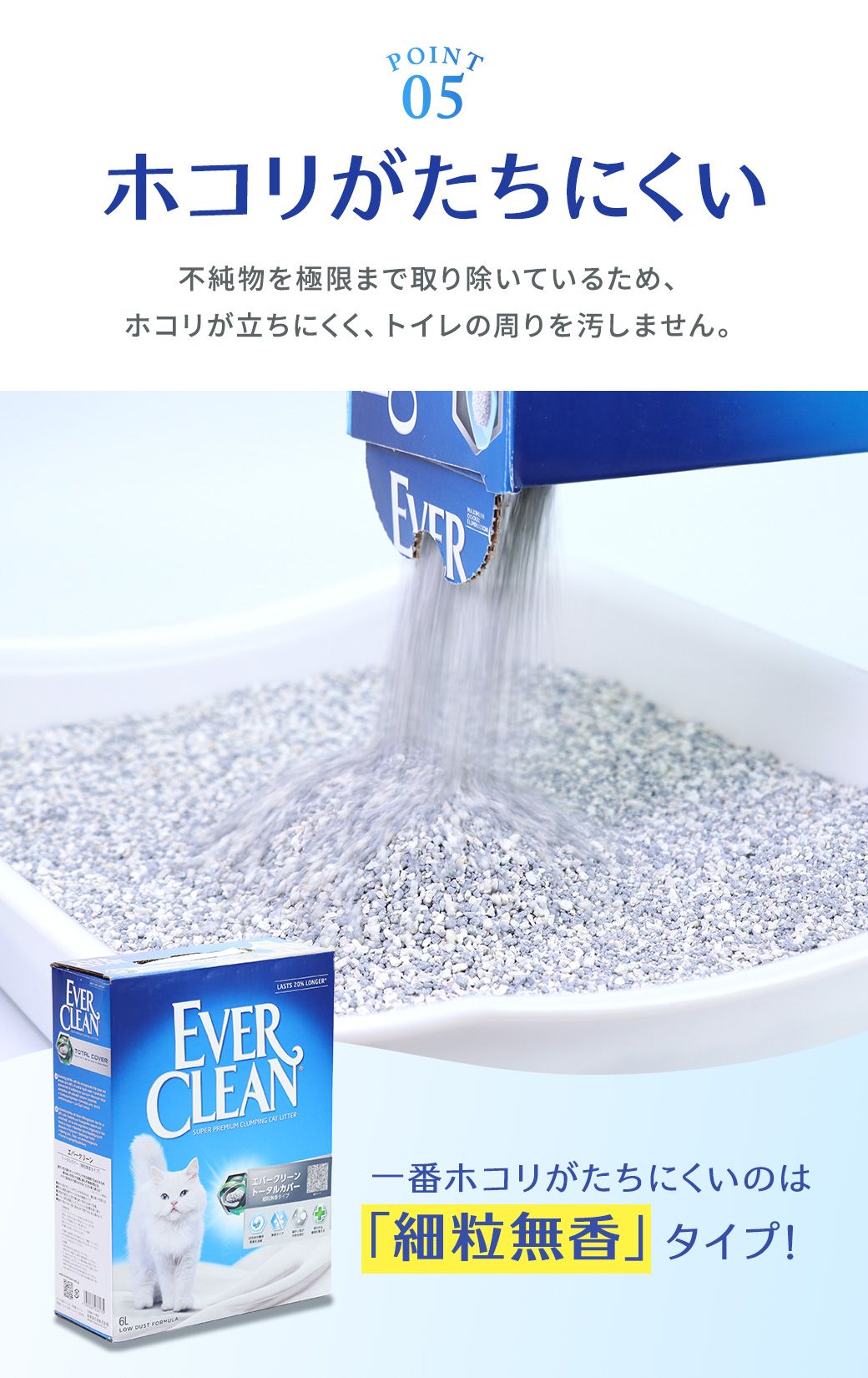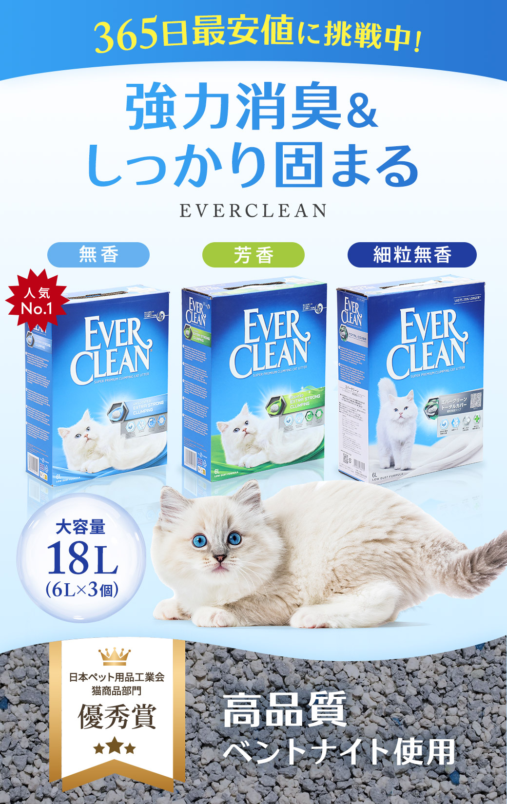 高品質ベントナイトを使用した、プレミアム猫砂「エバークリーン