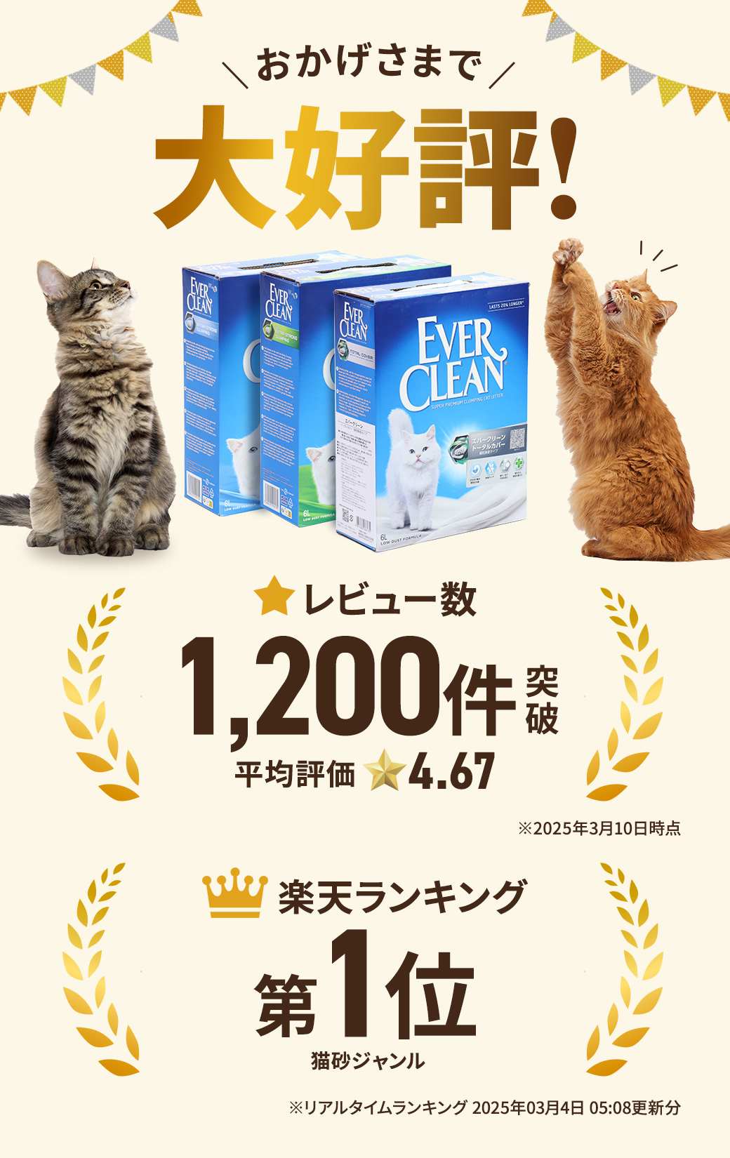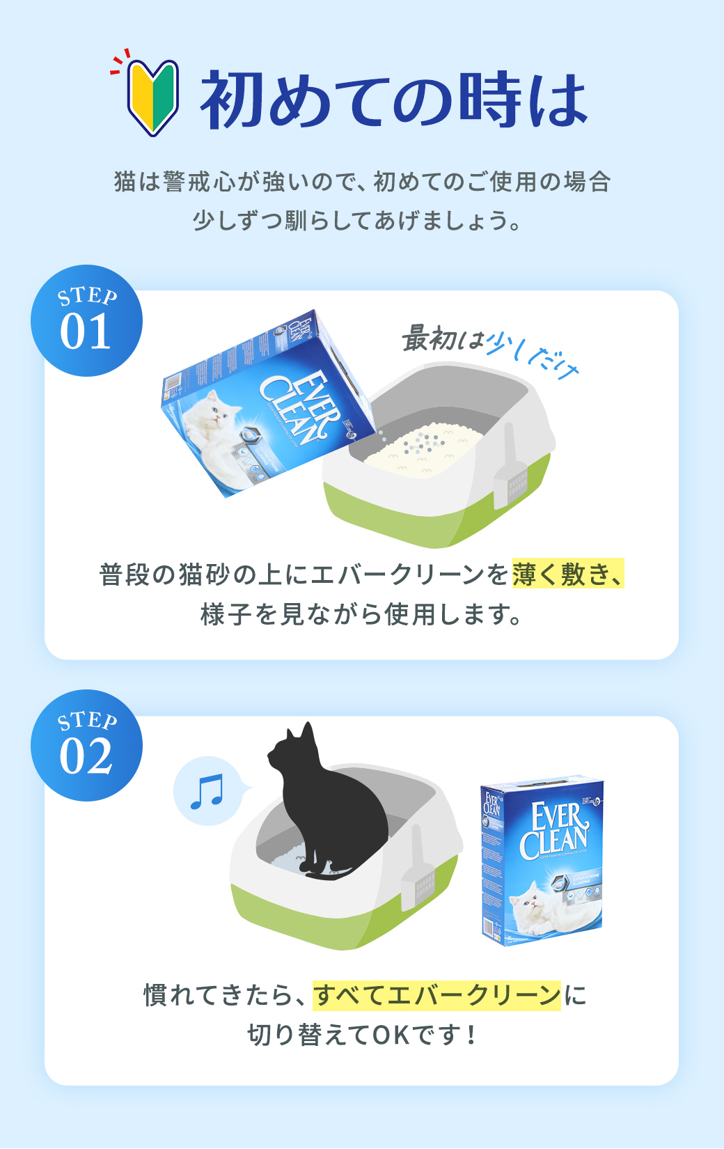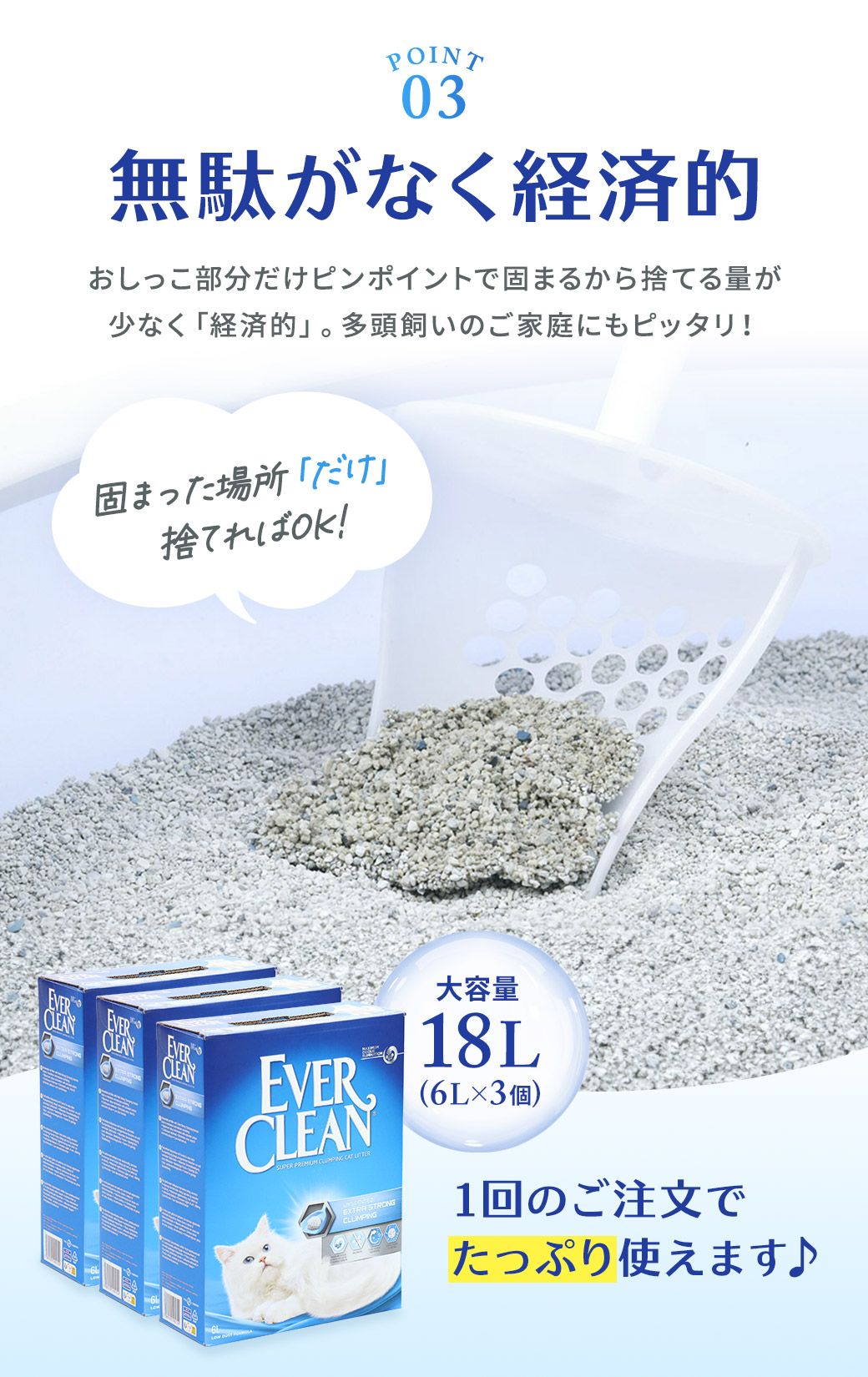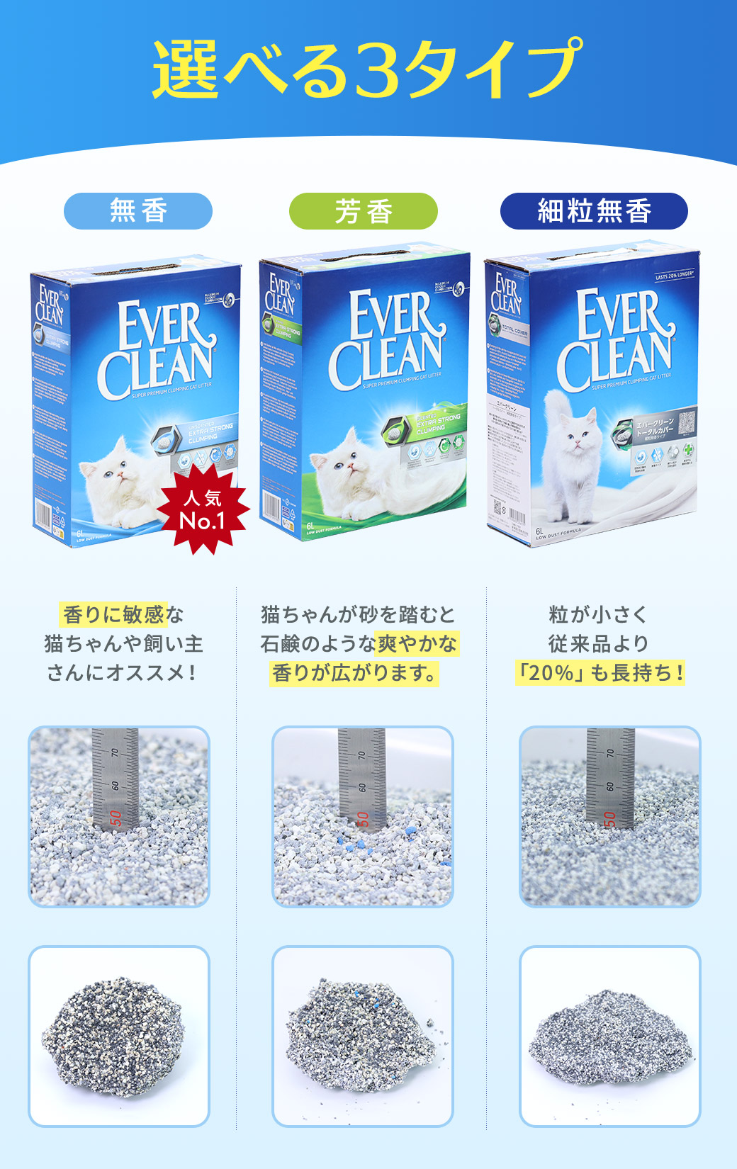 高品質ベントナイトを使用した、プレミアム猫砂「エバークリーン