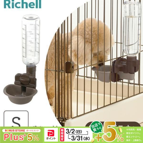 リッチェル ドッグウォーターディッシュ ボトル付 S ダークブラウン