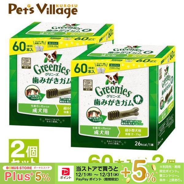公認店 グリニーズプラス 成犬用 超小型犬用 2-7kg 60本入×2個セット ボックス オーラルケア