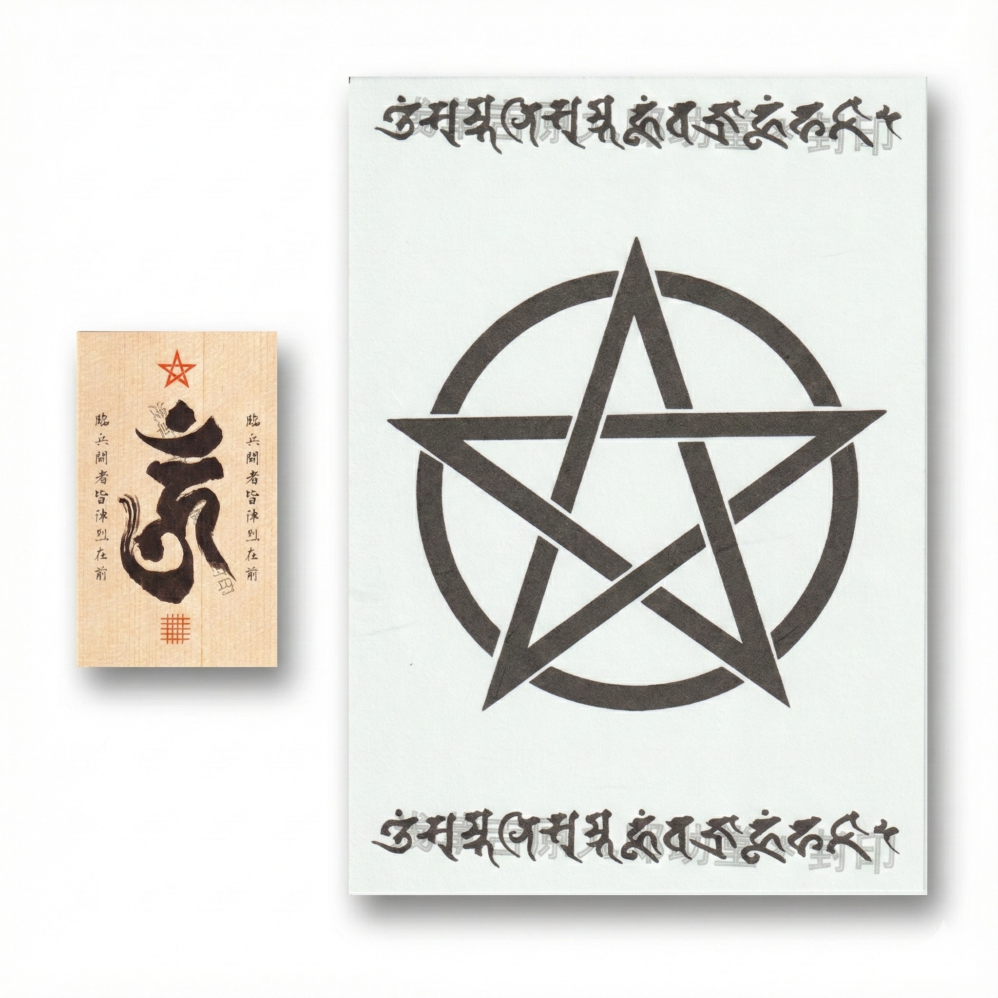 大日如来や不動明王の梵字(種子)を書いた護符を陣符の上に置き、刀印をした指で梵字に触れながら真言を唱えることで神仏の降臨を願い、加護をこうむるための護符(お守り)です。