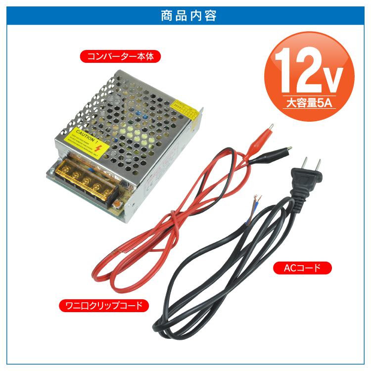 ACDC コンバーター 5A 直流安定化電源 AC100V→DC12V 変換器 変圧器 安全化電源 汎用品 AC DC コンバーター