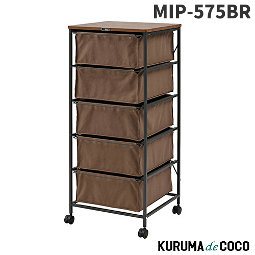 東谷 チェスト5段 MIP-575BR 使い勝手のいいキャンバスチェスト キャスター付