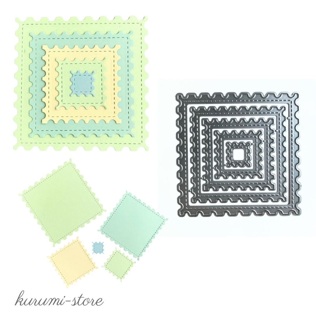 カッティングダイ ダイカット型 正方形 ステッチ入り スクラップブッキング ペーパークラフト コラージュ 素材 抜型 002