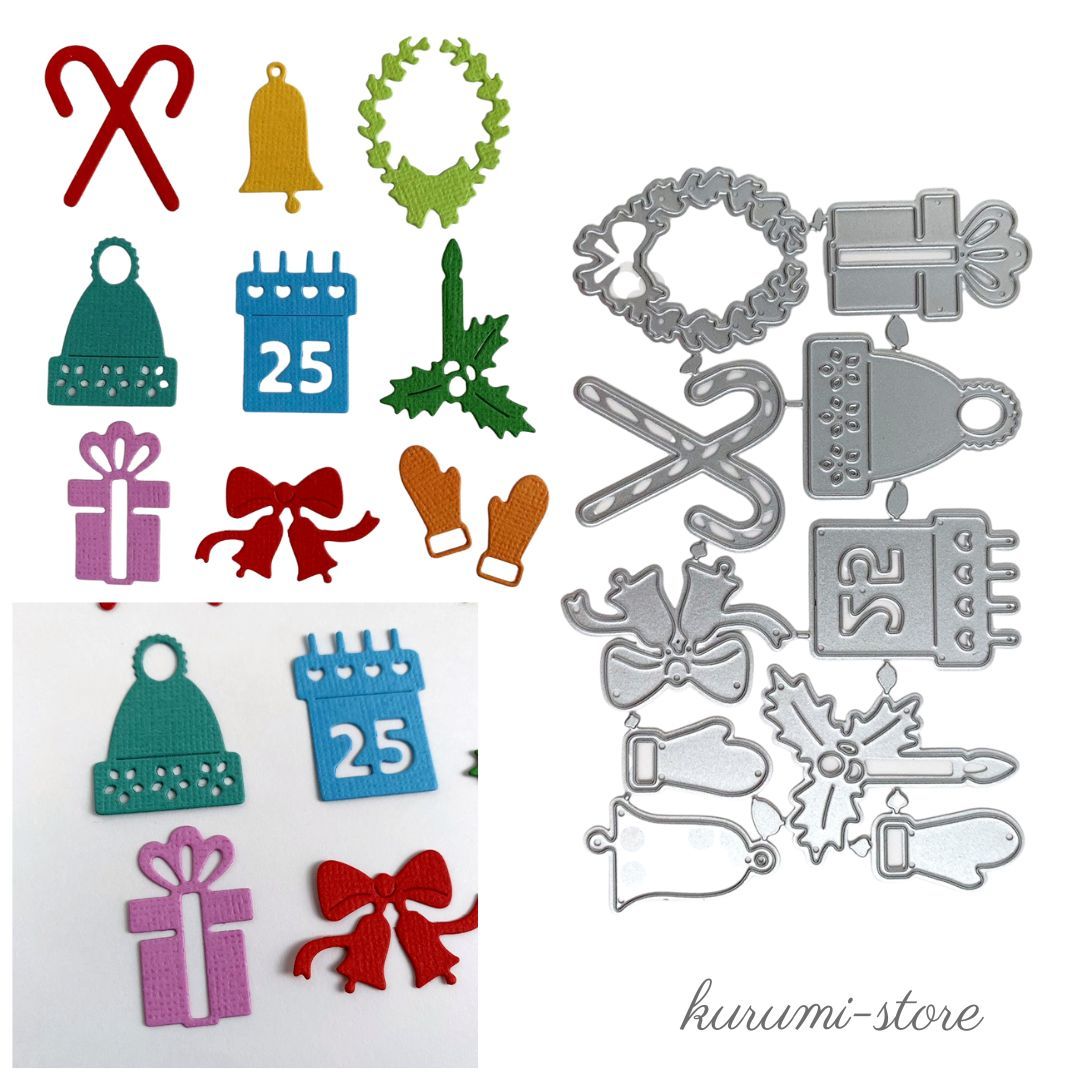 カッティングダイ クリスマス リボン プレゼント 手袋 花 植物 スクラップブッキング ダイ型 抜型 045
