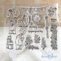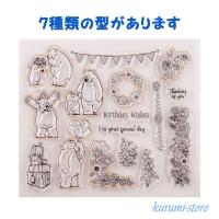 クリアスタンプ カッティングダイ ベア 花 熊 植物 海外 ペーパークラフト コラージュ 抜型 2点セット S16-1