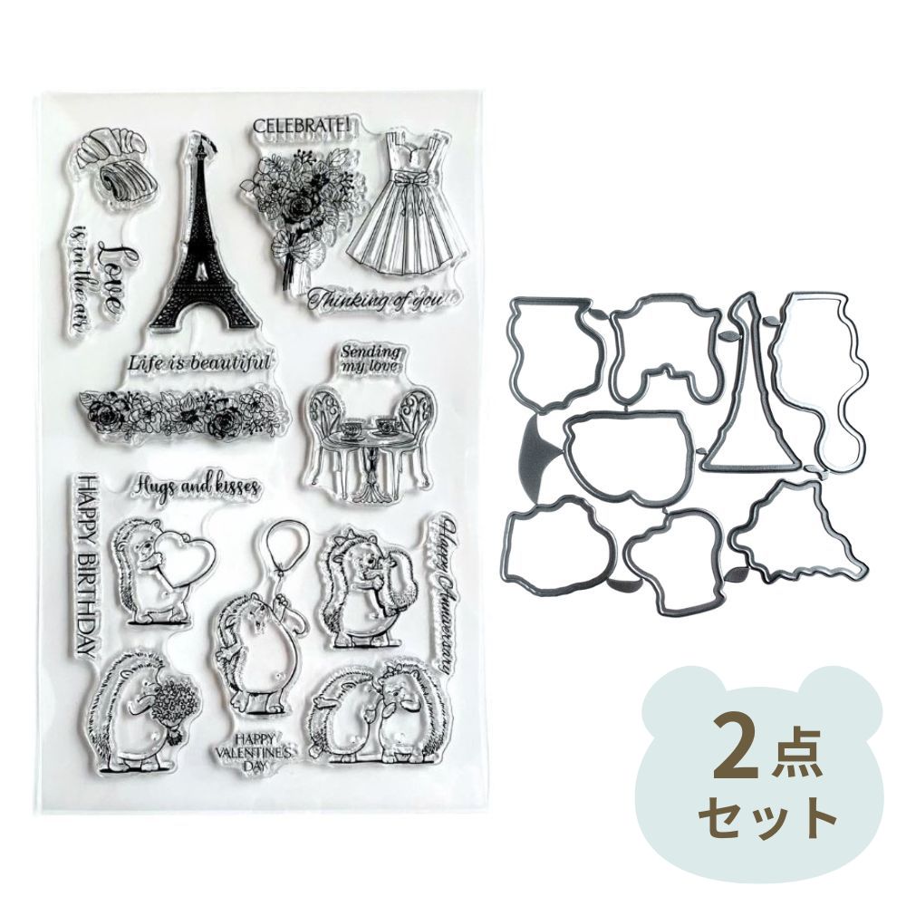 クリアスタンプ カッティングダイ ハリネズミ 海外 ペーパークラフト コラージュ 抜型 2点セット S22-1
