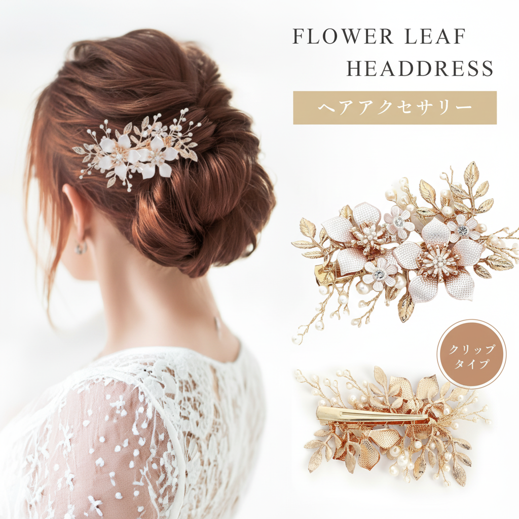 パールを1つ1つ丁寧に嵌め込んだヘアアクセサリー。