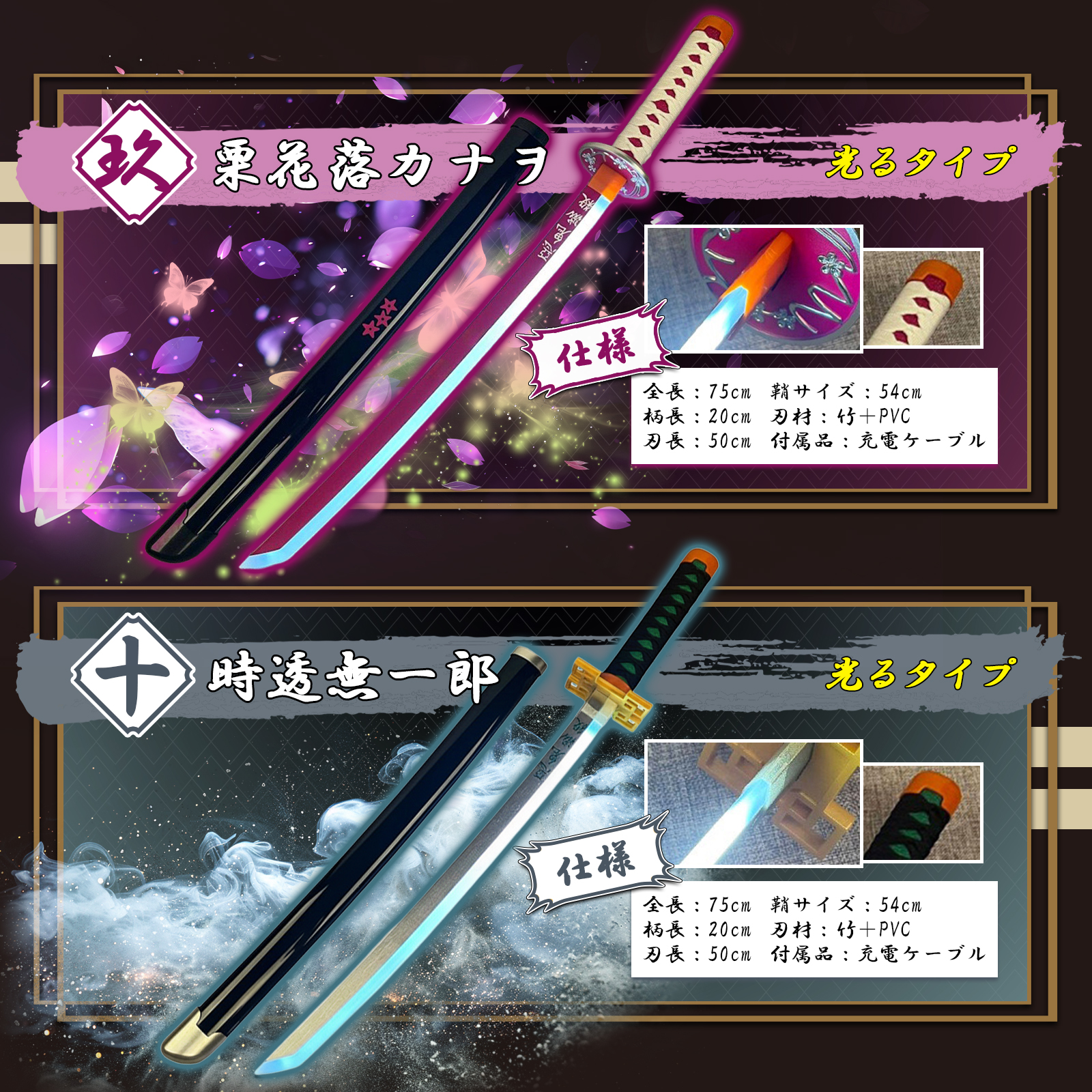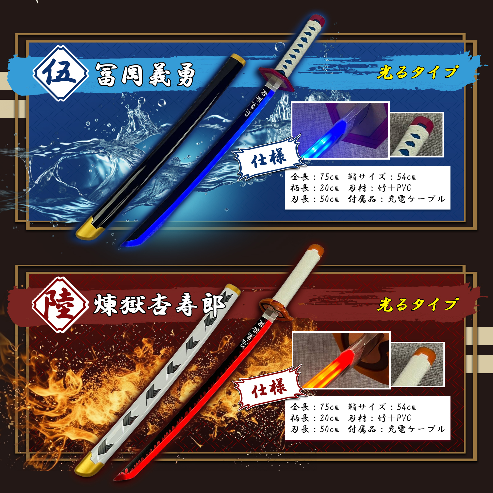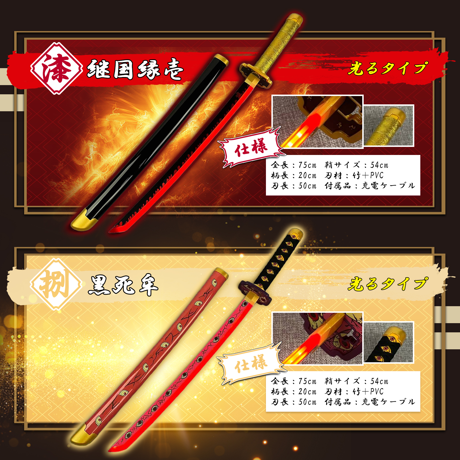 大人気!鬼滅の刃風コスプレ用 光る刀 2025年 新モデルデザイン!!品質も良く、充電は生活に身近であり便利な USB Type-C になります!