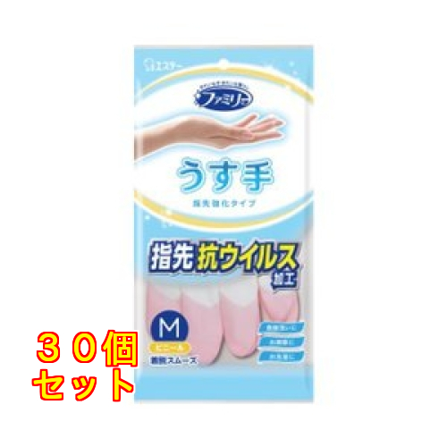 エステー ファミリー ビニールうす手 指先抗ウイルス加工 M ピンク