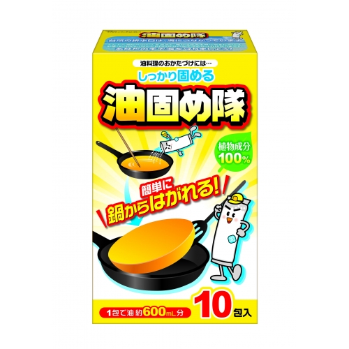 | 商品名 油固め隊 10包 内容量 10包 商品説明 ●1包で約600mLの油を固めるので、手やキッチンを汚さずに簡単に油を捨てられます。揚げカスもそのまま一緒に固めるので、フライパンやナベの後始末が簡単です。●植物由来の原料を使用しているので、安心して使えます。使用方法 必ず火を消してからご使用ください(1)調理直後、油が熱いうち(約80℃以上)に本品を入れます。(2)本品が完全に溶けるまでよくかき混ぜます。(3)油が固まるまで約1時間放置します。(室温や油の量によって時間が異なりますが、油が40℃以下になると固まります。)(4)固まったらフライ返しなどではがし、燃えるゴミとして捨ててください。冷えた油の場合●油固め隊を入れ、かきまぜながら再加熱(約80℃)します。●充分に溶けたら必ず火を消し、油をさましてください。 固まらない場合●油の量が多すぎると固まりません。油固め隊を追加し、再び加熱(約80℃)します。●溶けたら必ず火を消し、放置します。 用法・容量/使用方法 必ず火を消してからご使用ください(1)調理直後、油が熱いうち(約80℃以上)に本品を入れます。(2)本品が完全に溶けるまでよくかき混ぜます。(3)油が固まるまで約1時間放置します。(室温や油の量によって時間が異なりますが、油が40℃以下になると固まります。)(4)固まったらフライ返しなどではがし、燃えるゴミとして捨ててください。●冷えた油の場合は本品を入れ、かきまぜながら再加熱(約80℃)します。充分に溶けたら必ず火を消し、油を冷ましてください。●固まらない場合は本品を追加し、再び加熱(約80℃)します。充分に溶けたら必ず火を消し、油が固まるまで約1時間放置します。 使用上の注意 ●冷えた油に使う時は、油を熱しすぎないでください。●固まった油は、50℃以上で再び溶けだすことがあります。●用途以外には使用しないでください。●固めた油を調理に使用しないでください。●食品ではありませんので、食べないでください。 保管上の注意 乳幼児の手の届くところには置かないでください。 原材料/成分 天然油脂成分 販売、発売、製造、または輸入元 コットン・ラボ株式会社 お問合せ先 TEL:0893-25-5141 受付時間9:00〜12:00/13:00〜17:00(土・日・祝日を除く) 原産国 日本 |