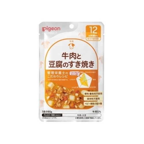 | 名称 食育レシピ 牛肉と豆腐のすき焼き 12ヵ月頃から 内容量 80g 商品説明 レーダーチャートが付いているので栄養バランスが一目でわかる管理栄養士のこだわりレシピ。 たんぱく質アイコンでメニュー選びをサポートします。 しょうゆのやさしい甘さ引き立つすき焼き風煮込みです。 12ヵ月頃からの赤ちゃんのかむ力の発達に合わせて、具材の大きさや固さを調整しています。 小麦を使用していないしょうゆを使っています。 着色料、香料、保存料は使用しておりません。 使用方法・用法及び使用上の注意 ・調理済みですので、器に移してそのままお召し上がりいただけます。 お湯で温める場合 ・加熱時間の目安:袋のまま1-2分。 ・袋の封を切らずに、沸騰させて火を止めたお湯につけて温めてください。 ・加熱後は、袋の穴に、はしなどを差し込んで取り出してください。 ・切り口から封をあけ、器に移し、軽くかき混ぜてお召し上がりください。 ・ヤケド注意。 電子レンジで温める場合 ・加熱時間の目安:500-600Wで10-20秒。 ・必ず中身を電子レンジ対応の容器に移し、ラップをかけて温めてください。 ・加熱後は、軽くかき混ぜてお召し上がりください。 ・ラップを取る際に熱くなった具やソースがはねることがありますのでご注意ください。 ・オート機能は使用しないでください。 ・ヤケド注意。 注意事項 ・月齢は目安です。具をつぶすなどして大きさ・固さを加減してあげてください。 ・加熱後は中身が熱くなっていますので、ヤケドをしないよう開封には十分ご注意ください。 ・熱くないか温度を確認してからお子様にお与えください。 ・開封後はなるべく早めにお使いください。 ・食べ残しや作りおきは与えないでください。 ・離乳のすすめ方については、専門家にご相談ください。 保管および取扱い上の注意 直射日光を避け、常温で存してください。 原材料 ・野菜(じゃがいも、にんじん、たまねぎ)、豆腐(大豆を含む)(国内製造)、牛肉、こんにゃく、しょうゆ、しいたけ水煮、かつおだし、食塩、砂糖、酵母エキス/増粘剤(加工でん粉)、豆腐用凝固剤、水酸化カルシウム(こんにゃく用凝固剤) ・アレルゲン:牛肉、大豆 ・栄養成分(1袋80gあたり):エネルギー 33kcal、たんぱく質 1.3g、脂質 1.0g、炭水化物 4.7g、食塩相当量 0.5g 発売元、製造元、輸入元又は販売元、消費者相談窓口 ピジョン株式会社 東京中央区日本橋久松町4-4 電話:0120-741-887 |