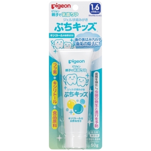 | 1才6ヵ月頃からの乳歯の性質を考えてつくられた、歯の黄ばみ汚れや歯垢を除去し、歯質を強化し虫歯の発生及び進行を予防するジェル状歯みがきです。 歯の汚れが気になる離乳食卒業の頃から。 有効成分フッ素(フッ化ナトリウム)と食品で使われる成分でできています。 歯の再石灰化を促進し歯質を強化する薬用成分フッ素(フッ化ナトリウム)配合。 むし歯の原因となる酸をつくらないキシリトール配合(湿潤剤)。 お子様のデリケートな乳歯を傷つけにくい、ソフトな清掃剤(無水ケイ酸)使用。 落ちにくい黄ばみ汚れや歯垢を除去し生えたての歯の白さを守ります。 発泡剤無添加で泡立たず、汚れ落ちを確認しながら、すみずみまでていねいにみがけます。 キシリトールの自然な甘さ。ミントタイプの香料不使用で、赤ちゃんが嫌がりません。 無着色・無香料・パラベンフリー・ノンミント。食品用原料成分使用。 [医薬部外品] |