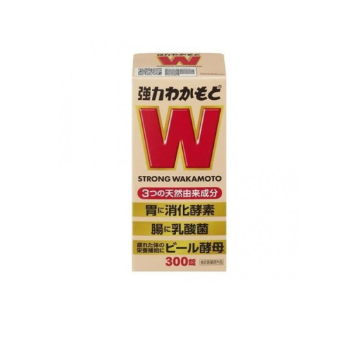 | 名称 わかもと製薬 強力わかもと 錠剤 300錠 内容量 300錠 使用方法・用法及び使用上の注意 1.次の人は服用前に医師又は薬剤師にご相談してください。 (1)医師の治療を受けている人。 (2)本人又は家族がアレルギー体質の人。 (3)薬によりアレルギー症状を起こしたことがある人。 2.次の場合は、直ちに服用を中止し、この文章を持って医師又は薬剤師に相談してください。 (1)服用後、次の症状があらわれた場合 関係部位:皮ふ 症 状:発疹・発赤、かゆみ (2)1カ月位服用しても症状が良くならない場合 効能・効果 ・胃もたれ、食欲不振、消化不良、消化不良による胃部・腹部膨満感、食べ過ぎ、胸つかえ、消化促進不振などに効果があります。 ・整腸(便通を整える)、軟便、便秘、腹部膨満感 ・滋養強壮、虚弱体質、肉体疲労・病中病後・胃腸障害・栄養障害・発熱性消耗性疾患・産前産後などの場合の栄養補給 用法・用量 成人(15歳以上):1回9錠 11歳以上15歳未満:1回6錠 8歳以上11歳未満:1回5錠 5歳以上8歳未満:1回3錠 5歳未満:服用しないこと 1日3回、食後に服用してください。 ・食後とは食事のあと30分位までをいいます。 ・水又はぬるま湯で服用してください。 成分・分量 27錠(成人1日量)中 アスペルギルス・オリゼーNK菌(消化酵素産生菌)培養末「小麦を含む」:3375.0mg 乳酸菌培養末「小麦を含む」:675.0mg 乾燥酵母(ビール酵母):2490.1mg チアミン硝化物(ビタミンB1):3.4mg リボフラビン(ビタミンB2):2.0mg ニコチン酸アミド:2.0mg 添加物:沈降炭酸カルシウム ※本剤は天然由来の原料を使用しておりますので、色・におい・味に多少の変動がある場合もありますが、服用に差し支えありません。 保管および取扱い上の注意 (1)直射日光の当たらない湿気の少ない涼しい所に、密栓して保管して下さい。なお、瓶入り製品については橙色のキャップで密栓して保管してください。分包品については、1包を分割して服用した残りは、袋の口を折り返して保管してください。 (2)小児の手の届かない所に保管してください。 (3)他の容器に入れ替えないでください。(誤用の原因になったり、品質が変わります。) (4)瓶の橙色のキャップのしめ方が不十分な場合、湿気などの影響で薬が変質することがありますので、服用のつど橙色のキャップをよくしめてください。また、ぬれた手で扱わないでください。 (5)使用期限を過ぎた製品は服用しないでください。 (6)一度開封した後は、品質保持の点から用法・用量どおりになるべく早く服用してください。特に、分包品については、品質保持の点から用法・用量どおりに2日以内に服用してください。 発売元、製造元、輸入元又は販売元、消費者相談窓口 お問い合わせ先 わかもと製薬株式会社「お客様相談室」 電話番号:03(3279)1221 受付時間:9:00〜17:30(土・日・祝日を除く) |
